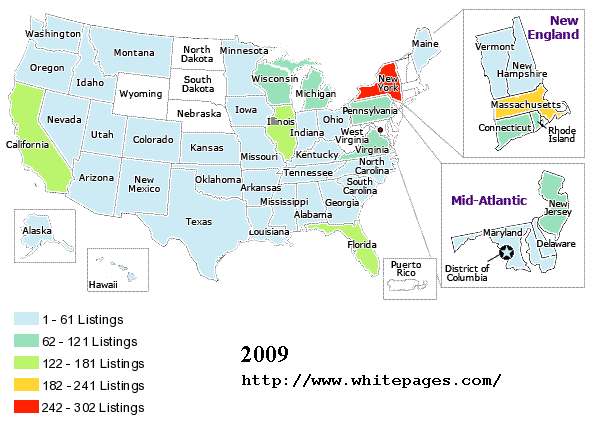 in 2009 (as reported in telephone directories).