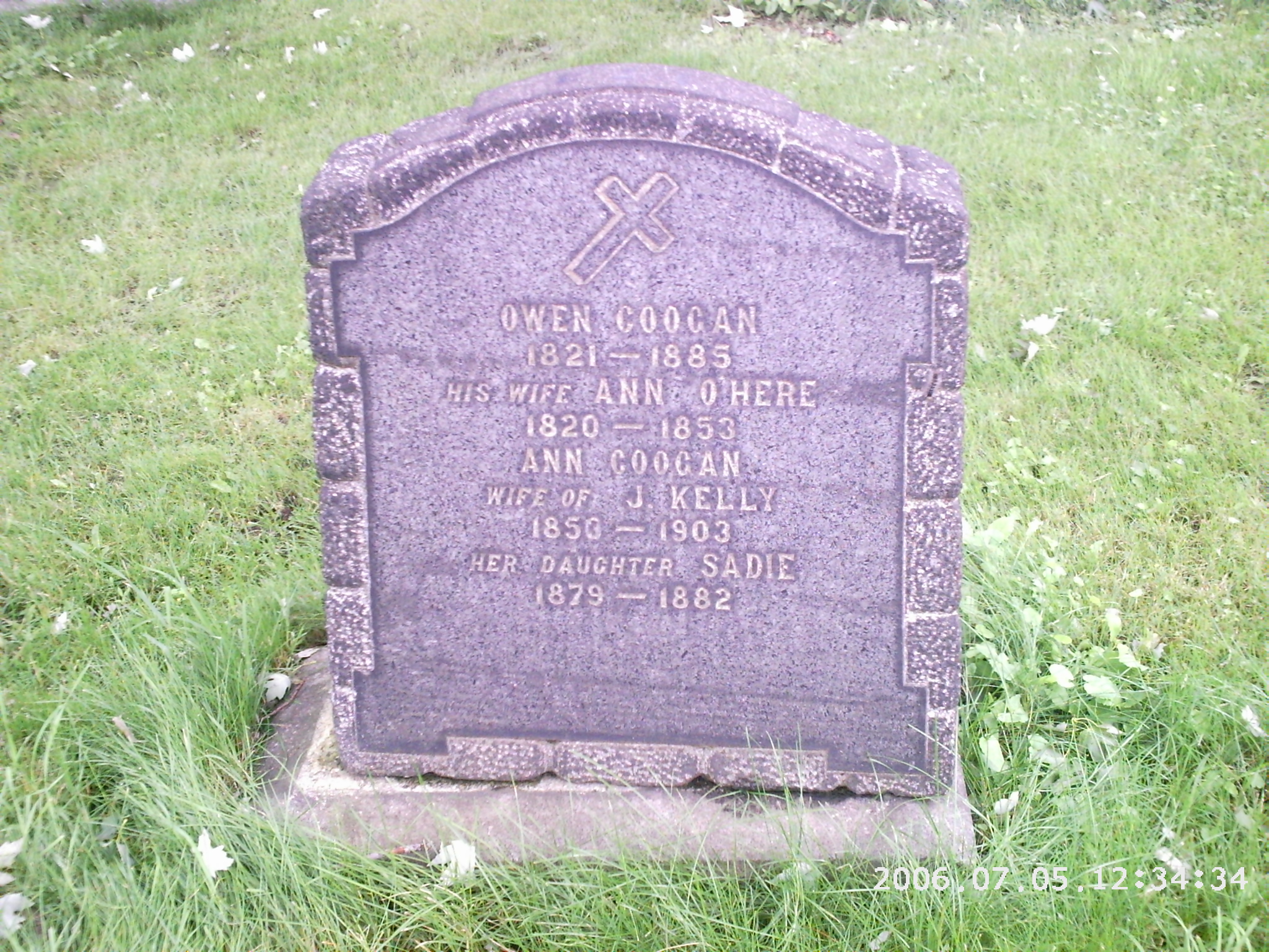 | Ann Coogan | X | 1899 | X | Cote des Neiges [RC] | X | Montreal, QC | X | JUL 2006 | X | YES | X | Jim Coogan |