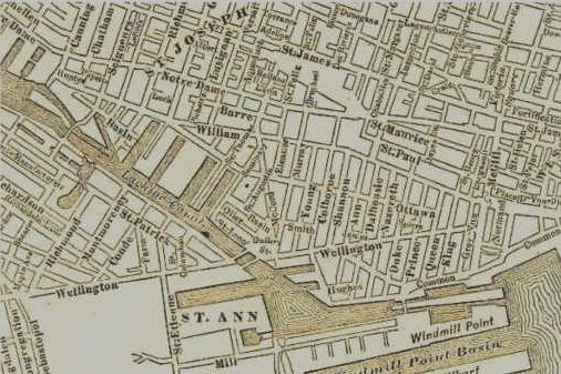 LOCATIONGriffintown was located in Montreal, Province of Quebec, Canada. It was once a working-class neighbourhood stretching as far north as Notre-Dame street and bounded on the east by McGill street and on the west by Guy Street. One of the main roads through the area was Dalhousie Street. It was oriented in a North-South axis and, according to former resident Terrance Flanagan, "was probably never more than 300 or 400 yards in length at any period of time. One end was anchored on a place called Haymarket Square and the other end butted up against the Lachine Canal." NOTE: "Griffintown" was a Nineteenth Century colloquial name and is not commonly used in the present day. The actual name of the area is Saint Ann's Ward. |